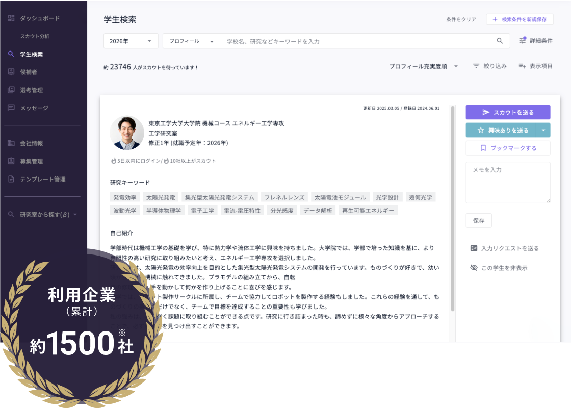 本当にマッチするスキル・経験を持つ学生を、的確に見極められます。