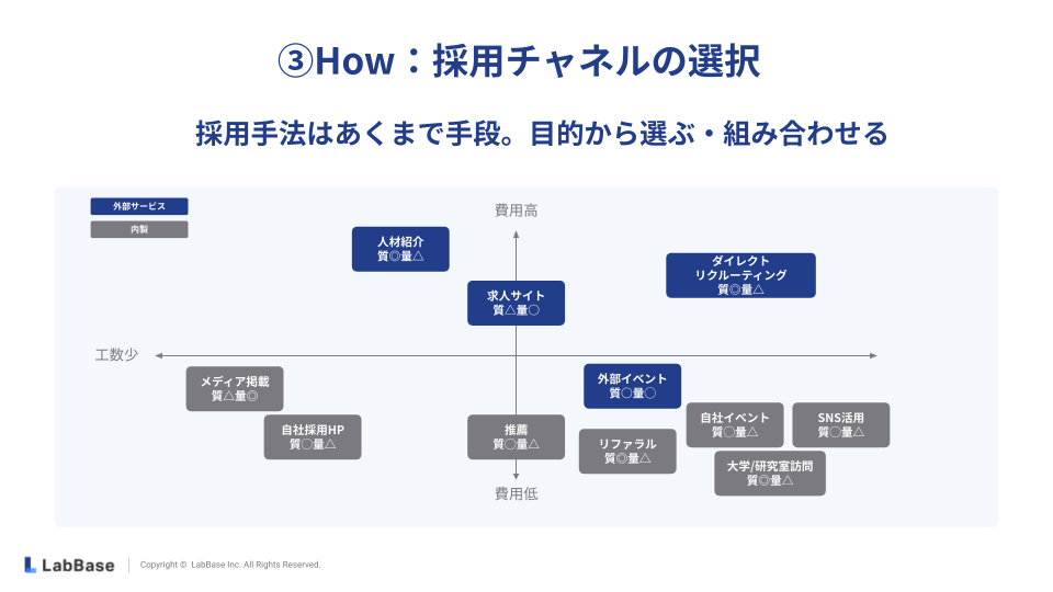 まず採用チャネルについてですが、学生との接点づくりや採用チャネルの選定は、あくまで手段と捉えるのが良いと考えています。