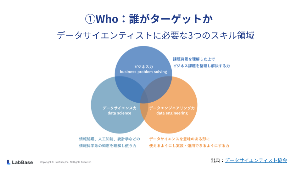 データサイエンティストに求められるのが下記の3つのスキルです。
