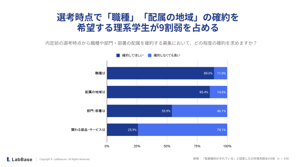 この結果からも、配属確約が学生の志望度・内定承諾に大きく影響することがわかります。