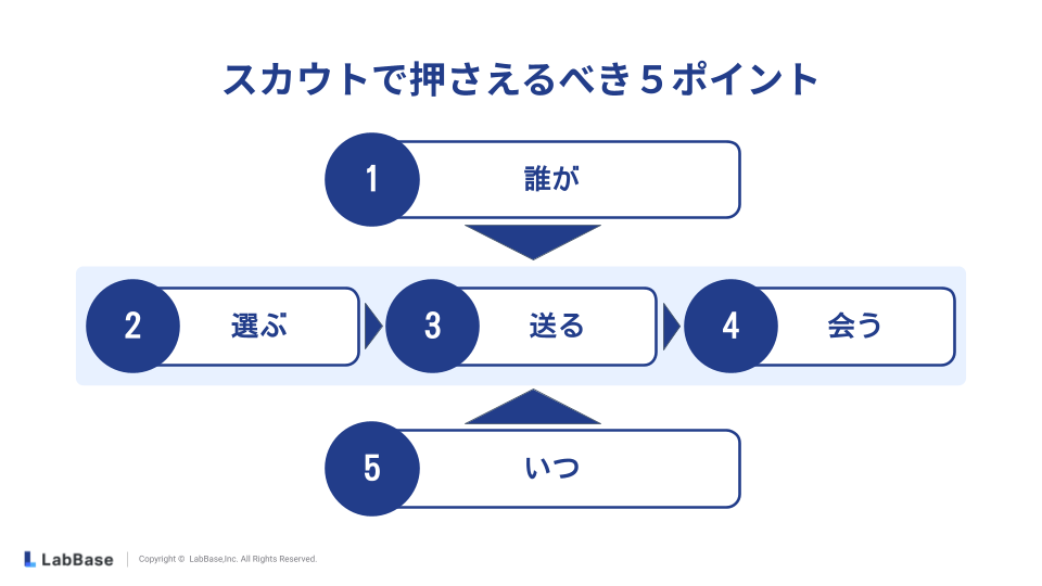 スカウトを送るまでの一連の流れを踏まえた、重要ポイント5つが下記です。