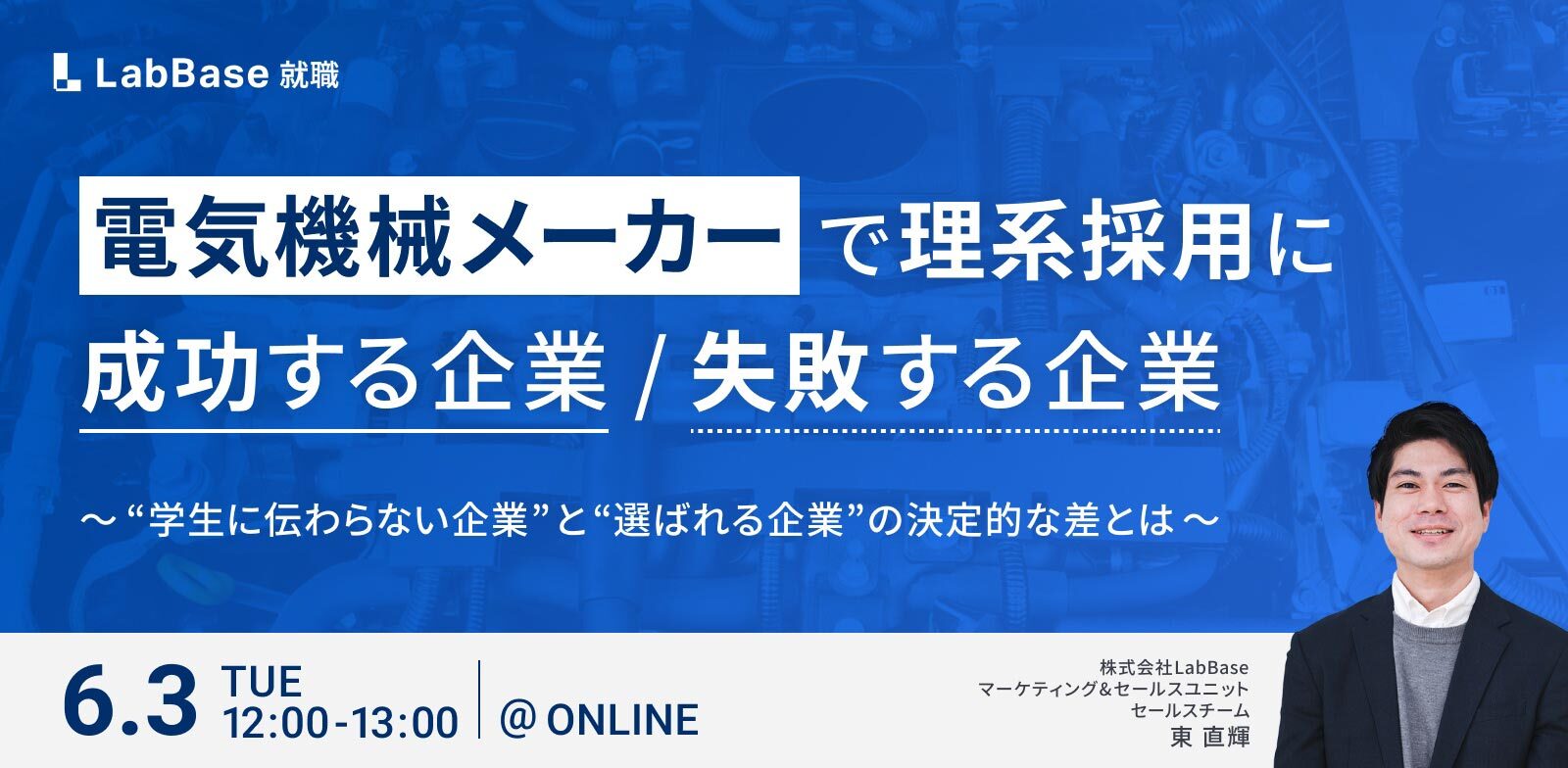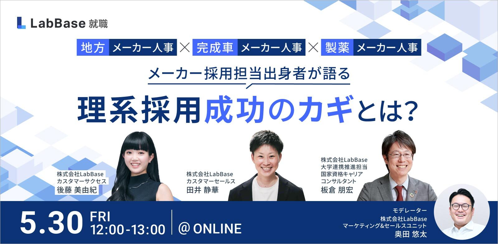 そこで今回、株式会社LabBaseにて累計400社以上の理系採用を支援しているカスタマーサクセス鈴木をスピーカーに、知名度に悩む企業がどのように機電・情報系学生を採用していくべきか、成功事例から紐解く採用のポイントとその具体事例をお話しいたします。