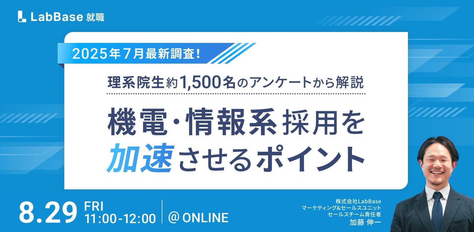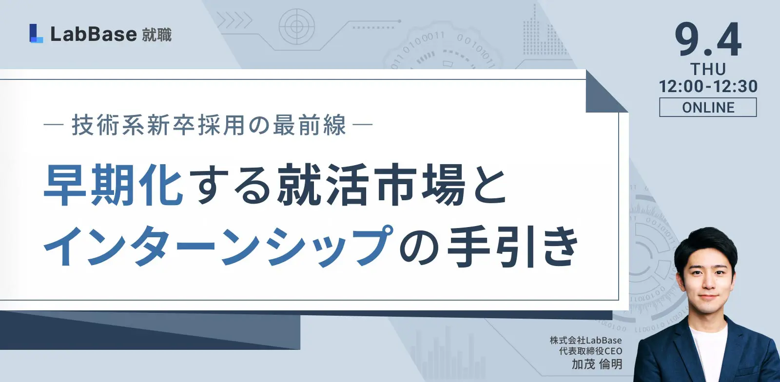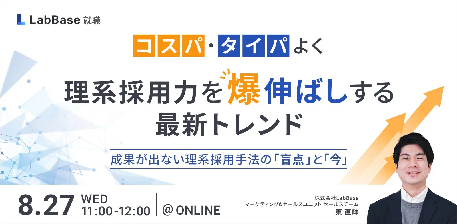 セミナーに関する個人情報の取扱いについて/株式会社LabBase(以下、当社といいます)は、当社「プライバシーポリシー( https://labbase.co.jp/about/privacy/ )」に記載の利用目的に基づき、本セミナーにお申込みいただいたお客さまの個人情報を取得させていただきます。利用させていただくにあたって、当該個人情報は「個人情報の保護に関する法律」の定めに従い、適正に取扱います。